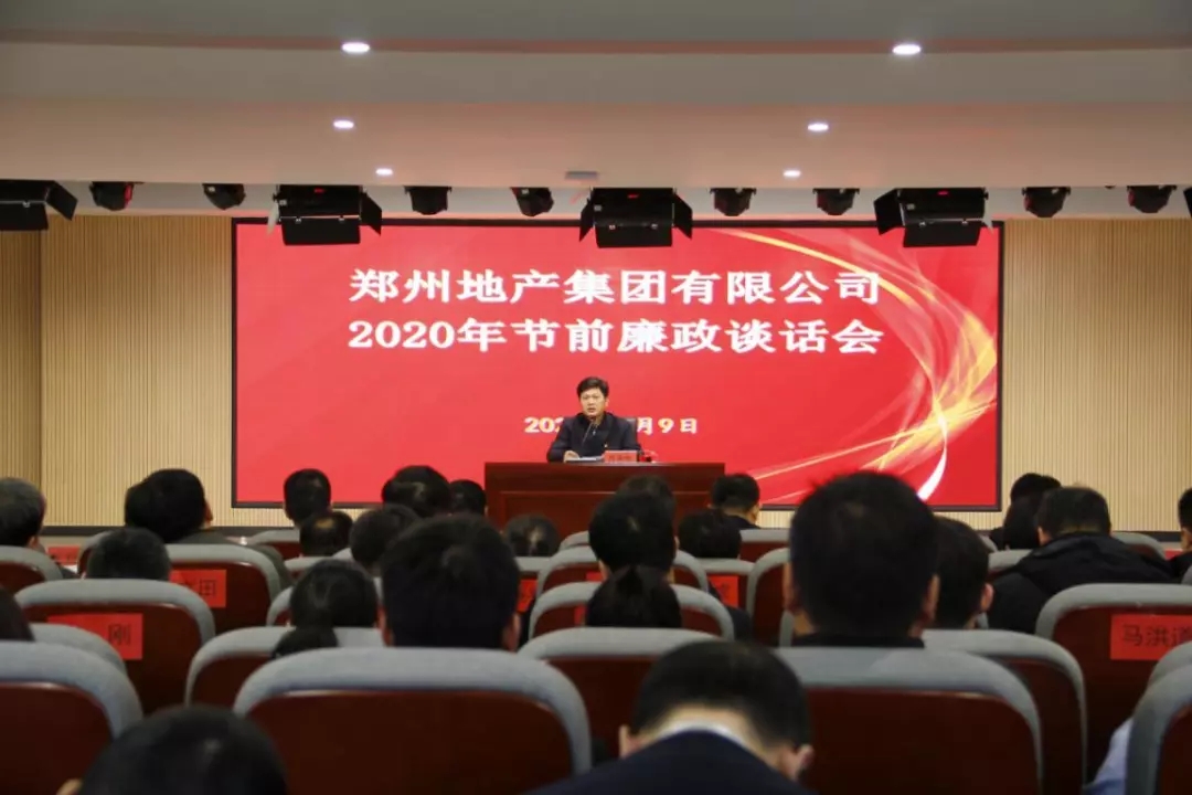 1月9日上午,鄭州地產(chǎn)在301會議室召開2020年節(jié)前廉政談話會,會議由黨委委員、監(jiān)事會主席李靜波主持,黨委書記、董事長萬永生做廉政談話,集團全體人員及各子公司高管共計150余人參加。
