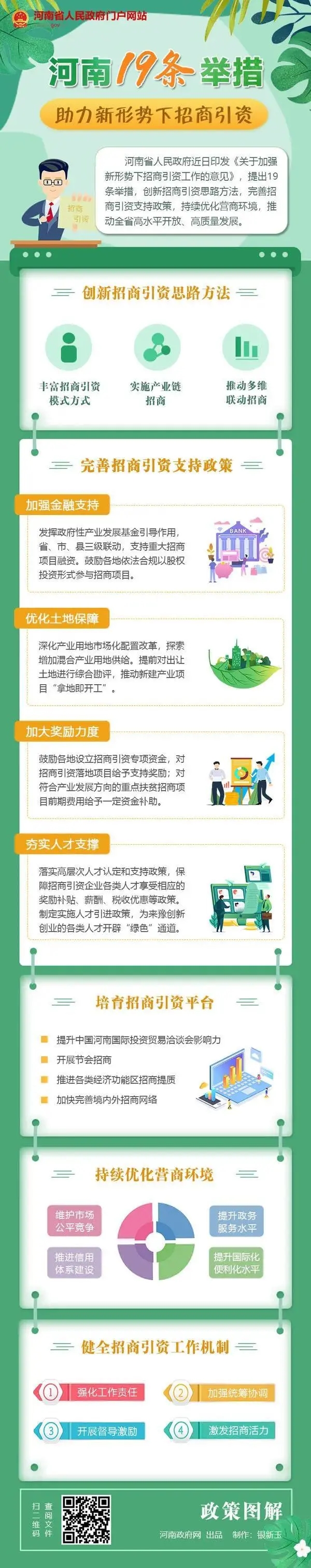 在新形勢(shì)下,河南如何做好招商引資工作?近日,河南省政府印發(fā)《關(guān)于加強(qiáng)新形勢(shì)下招商引資工作的意見(jiàn)》(以下簡(jiǎn)稱(chēng)《意見(jiàn)》),提出19條舉措,創(chuàng)新招商引資思路方法,完善招商引資支持政策,持續(xù)優(yōu)化營(yíng)商環(huán)境,推動(dòng)全省高水平開(kāi)放、高質(zhì)量發(fā)展。