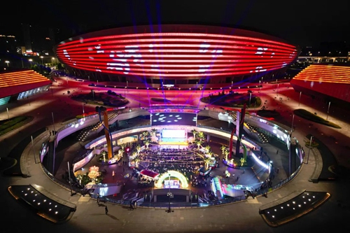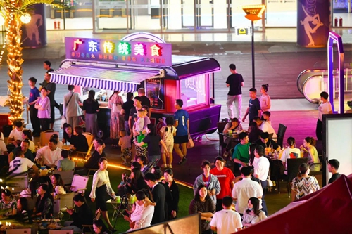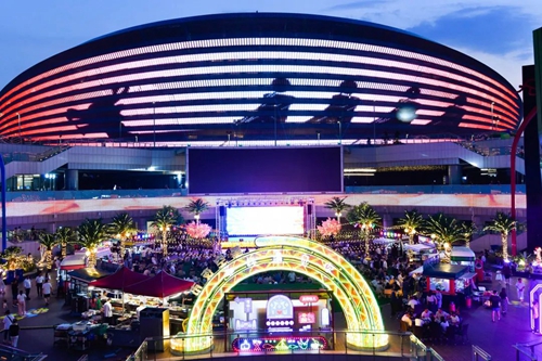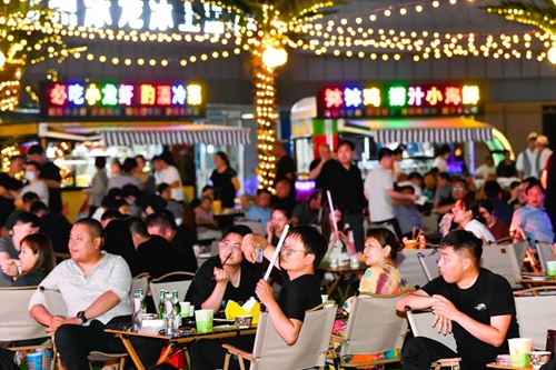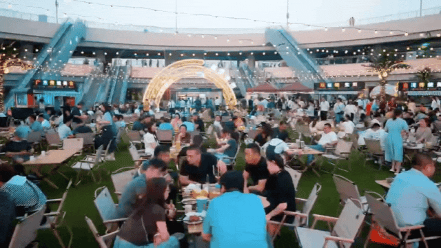 熠熠星光耀向夜空,呼應(yīng)著霓虹閃爍的奧體中心,飄散的煙火氣和美食的香氣充斥著整個下沉空間,舞臺音樂節(jié)奏歡快、火爆酷炫,在霓虹交錯的空間里,一天的時間仿佛被夜市拉長,這是年輕人帶給這座城市的無限活力。