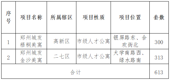 按照《鄭州市人才公寓管理暫行辦法》(鄭政辦〔2023〕11號)要求,現(xiàn)將2023年我市第六批人才公寓配租事項公告如下: