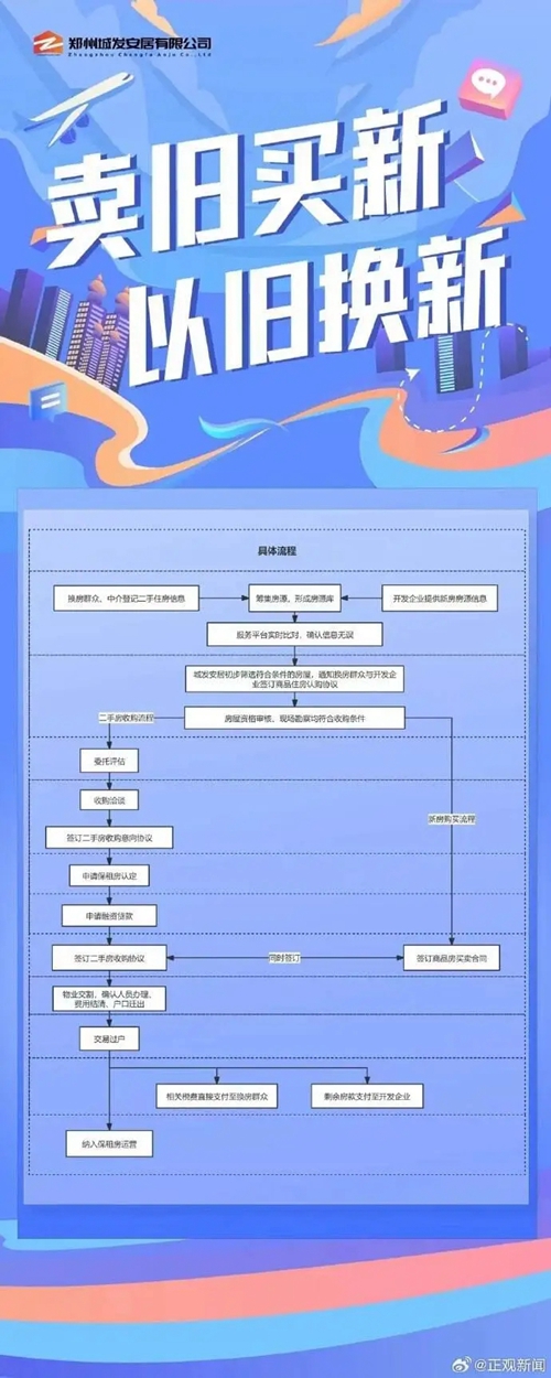 鄭州房產(chǎn)市場“賣舊買新、以舊換新”旨在滿足群眾改善性住房需求。具體來講,由政府指定收購主體—鄭州城市發(fā)展集團有限公司與具有改善需求的換房群眾進行洽談,通過價格評估、銀行貸款等一系列工作流程,收購群眾二手房源,為群眾購買新房提供資金支持,暢通買賣渠道。此外,群眾也可通過市場化方式進行交易。
