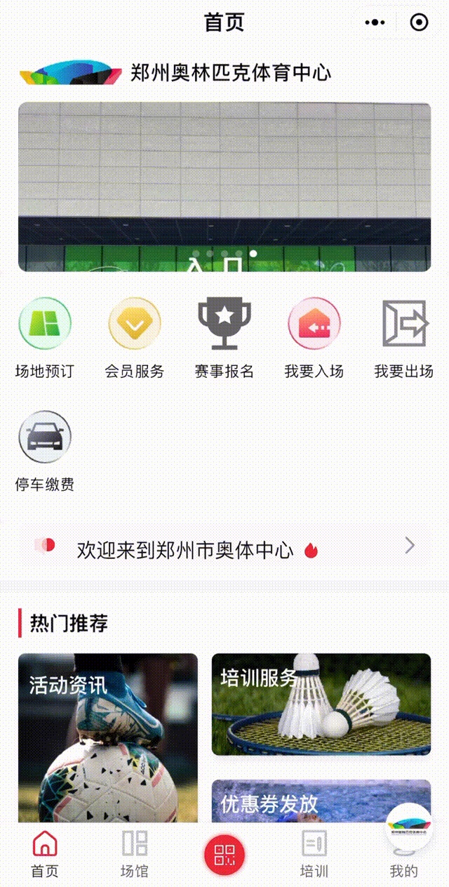 鄭州奧體中心小程序推出全民健身暢游券