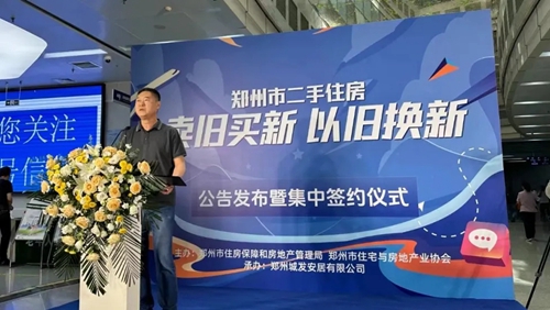5月10日上午,由鄭州市住房保障和房地產(chǎn)管理局、鄭州市住宅與房地產(chǎn)業(yè)協(xié)會主辦的鄭州市二手住房“賣舊買新、以舊換新”公告發(fā)布暨集中簽約儀式在鄭州市房屋交易中心召開。