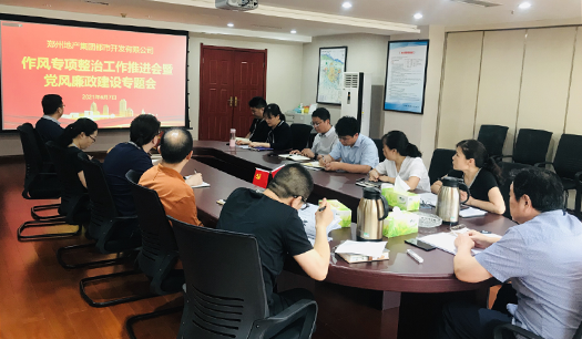 6月7日,都市開發(fā)公司組織召開作風專項整治工作推進會暨黨風廉政建設專題會,公司班子成員、全體中層干部參加,會議由黨支部書記、公司董事長索虎主持。會議傳達了集團作風專項整治工作推進會工作要求,并再次學習《鄭州地產集團有限公司作風建設專項整治活動實施方案》。會議要求公司各部門要嚴格按照集團黨委要求開展作風建設專項整治活動,確保作風建設專項整治取得實效;要進一步樹立問題導向,抓作風提效能,深入自查自糾,建立工作臺賬,持續(xù)整改落實。