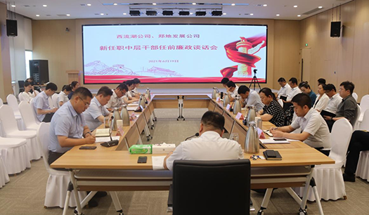 6月19日下午,西流湖公司、鄭地發(fā)展公司召開新任中層干部任前廉政談話會。公司領導班子成員、中層正副職人員及新任職中層干部人員共計二十余人參加,會議由公司黨支部書記、董事長、總經理吉獻亮主持。會議要求新任中層干部要認清定位、做好表率,要對下負責、嚴格管理,以強烈的事業(yè)心和主人翁姿態(tài),主動扛大梁、挑重擔、負重責、做貢獻;要敢于擔當作為,勇于攻堅克難,要以踏石留印、抓鐵有痕的勁頭理清思路、突出重點、轉變作風、創(chuàng)新機制,以主動擔當、奮發(fā)有為的姿態(tài)扛起助力城市建設發(fā)展的大旗,為鄭州國家中心城市建設增光添彩。